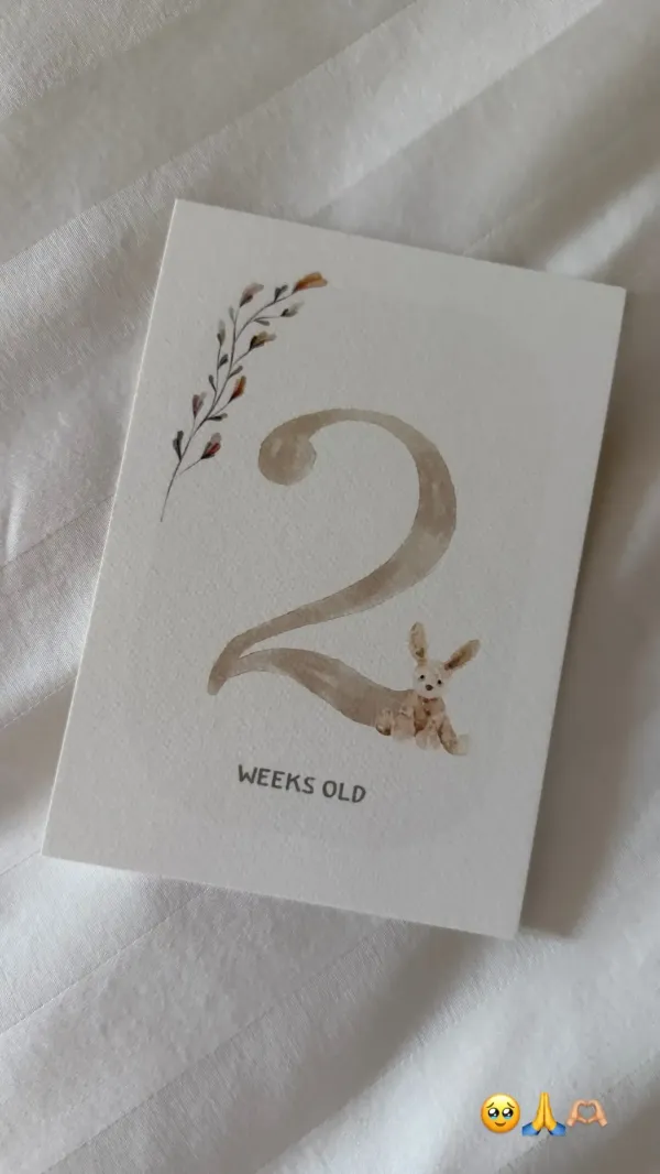 Στην εικόνα που δημοσίευσε, ξεχωρίζει μια κομψή κάρτα σε απαλές αποχρώσεις, διακοσμημένη με ένα μικρό λαγουδάκι και τον αριθμό «2», συνοδευόμενο από τη φράση «weeks old». Με αυτόν τον τρόπο, αποκάλυψε πως η νεογέννητη κόρη της, καρπός του έρωτά της με τον Παναγιώτη Κουτσουμπή, συμπλήρωσε δύο εβδομάδες ζωής.